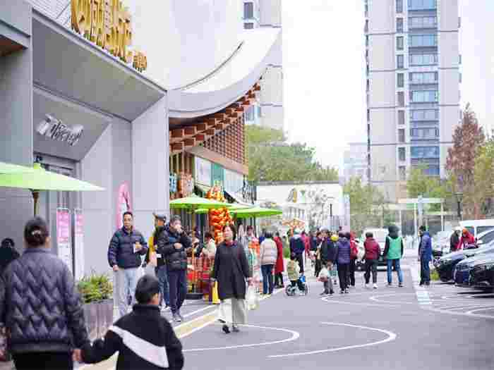 整合优质生鲜市集、卤味小吃、品牌水果、连锁超市,融合老头儿油爆虾、智小盒邻里食堂等餐饮,加持便民格子铺、共享厨房、怀旧画廊、非遗传承展示等服务,构建“幸福逛吃场景”。